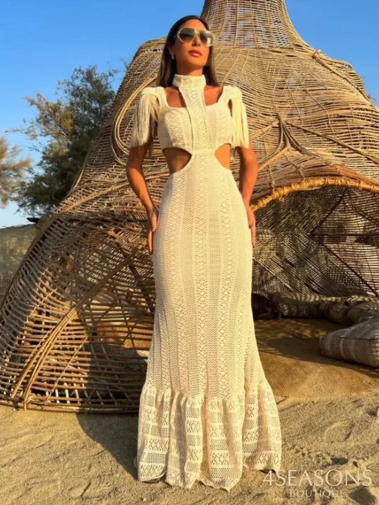 • Dress style: Long with fringe detail on the shoulder